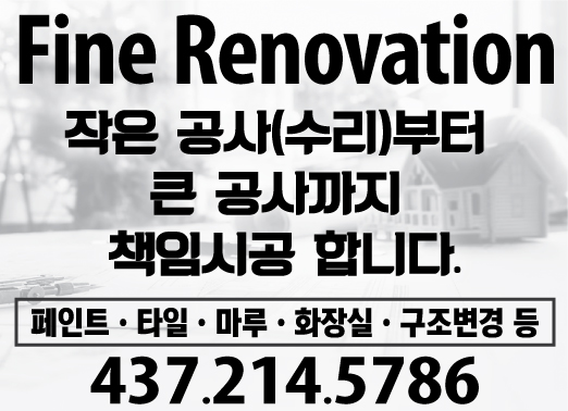 파인 레노베이션 작성자 정보 관리자 작성 작성일 2023.07.12 11:27 컨텐츠 정보 1,011 조회 목록 본문 Fine Renovation에서 수리와 같은 작은 공사부터 큰 공사까지 책임시공 해드립니다.◆페인트 ◇타일 ◆마루 ◇화장실 ◆구조변경 등 관련자료 이전 요크미술학원 캐나다 미대입시전문 작성일 2023.07.12 14:15 다음 LA 비즈니스 홍보 대행업체 [초기비용 없음] - 사장님들의 비즈니스를 지구 구석구석까지 홍보해 드리도록 하겠습니다. 작성일 2023.07.12 00:19 댓글 0 등록된 댓글이 없습니다. 로그인한 회원만 댓글 등록이 가능합니다. 목록