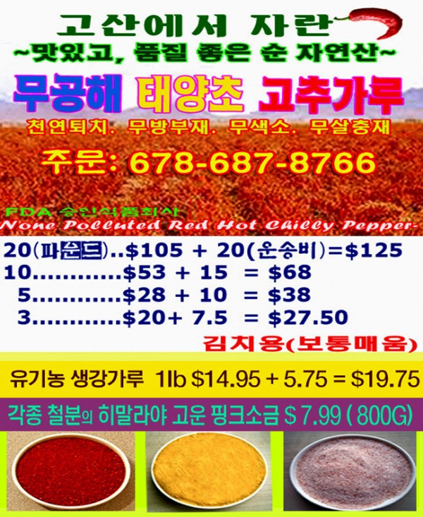 1400m 멕시코 고산에서 자란, 맛있고 건강에 좋은 무공해 태양초 고추가루! 작성자 정보 riverflow 작성 작성일 2025.07.27 05:18 컨텐츠 정보 570 조회 목록 본문 1400m 멕시코 고산에서 자란, 맛있고 건강에 좋은 무공해 태양초 고추가루! 관련자료 이전 RM 캐비넷 & 디자인 작성일 2025.08.05 23:49 다음 담배 해외배송쇼핑몰 [타바코]입니다. 작성일 2025.05.20 16:21 댓글 0 등록된 댓글이 없습니다. 로그인한 회원만 댓글 등록이 가능합니다. 목록