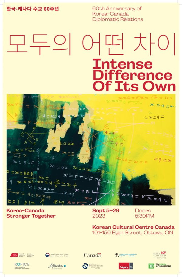 문화체육관광부 (장관 박보균), 해외문화홍보원(KOCIS, 원장 김장호), 한국국제문화교류진흥원(원장 정길화), 그리고 주캐나다한국문화원(원장 이성은)은 2023한-캐 수교 60주년을 기념하여 9월5일부터 9월29일까지 문화원 전시실에서 한-캐 장애전시 교류전 <모두의 어떤 차이 : Intense Difference of Its Own>을 개최한다.